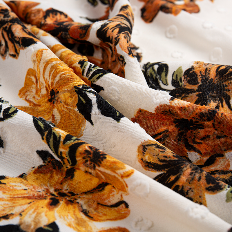 | 2-16 | 100% poileistir | Jacquard 180D*180D | 150GSM | 57/58 | Dathú, priontáil, bróidnéireacht, wrinkling, stampáil te, múnlú drip, etc. | Faisean na bhfear agus na mban, gúnaí, culottes, léinte, teicstílí tí, etc. |