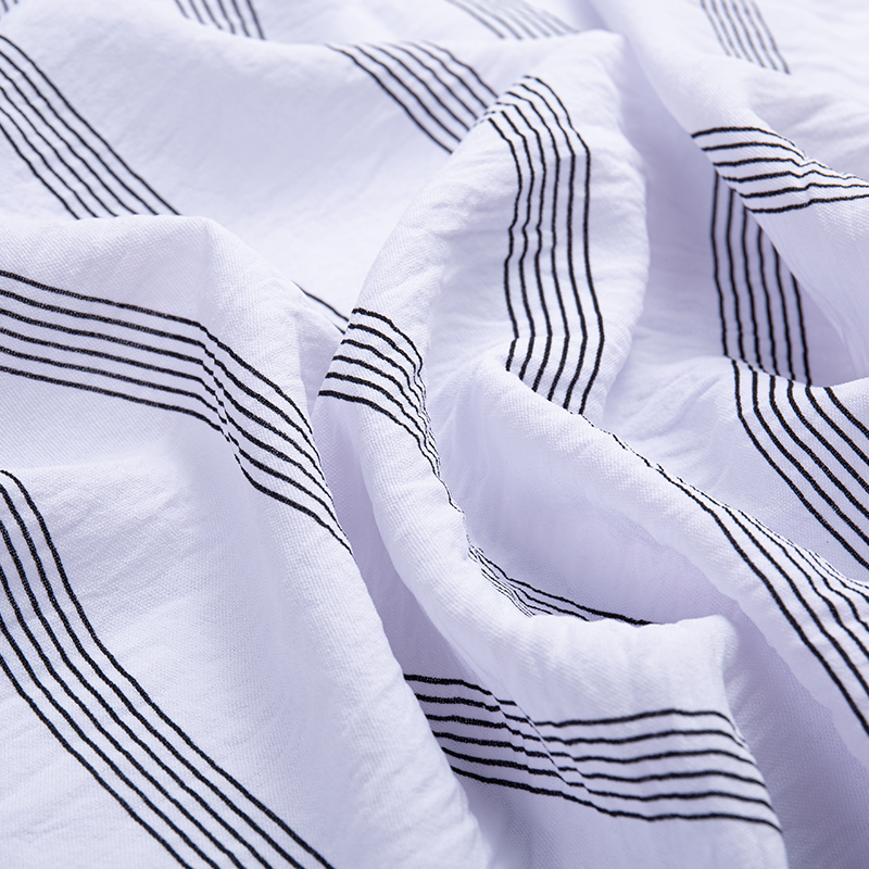 | 2-10 | 100% poileistir | Jacquard 160D*160D | 210GSM | 57/58 | Dathú, priontáil, bróidnéireacht, wrinkling, stampáil te, múnlú drip, etc. | Faisean na bhfear agus na mban, feisteas gnó, sciortaí agus bríste, léinte, teicstílí tí, etc. |