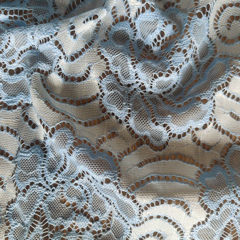 | 13-18 | 95% níolón, 5% spandex | 130-140GSM | 57/58 | Dathú, priontáil, sequins, crepe, etc. | Gúnaí bainise, fallaingeacha tráthnóna, lingerie na mban, ceardaíocht, maisiúcháin bréagán, cultacha amharclainne, maisiúcháin lása, cuirtíní, éadaí boird, coasters, línéadaigh leapa, etc. | |